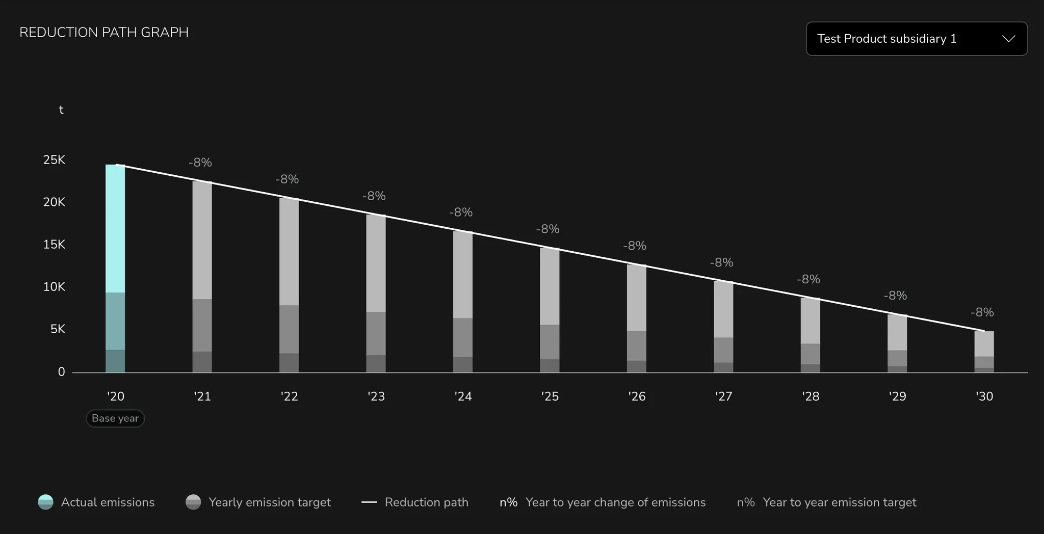 - Reduction target: The reduction target is calculated by the emissions of your base year and the reduction percentage set by you in your Reduction Path.